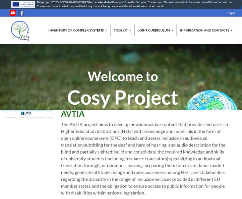 The Cosy-thinking project identifies three main specific objectives: to strengthen the collaboration among academic institutions provide them with a clearer picture of the range of opportunities between the universal and the particular; to provide academic lecturers and managerial staff with knowledge, skills and tools for adapting their educational activities with a specific focus on sustainable development and to provide undergraduate students with competences on complex systems thinking as a basis for sustainability action and make them employable in organizations interested to meet the sustainable development goals. The website of the project reports a link to the AVTIA project from the Press and Media section