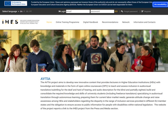 The purpose of IHES project is to develop and implement online programme on inclusion and independent living for people with intellectual disabilities in universities; to design and pilot a methodology to support inclusion of students with intellectual disabilities in the Higher Education (HE) systems; and to develop a set of recommendations to university policy and decision makers at HE level on how to promote inclusion of people with intellectual disabilities. The website of the project reports a link to the title of project A project from the Press and Media section. The website of the project reports a link to the AVTIA project from the Press and Media section.